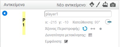 - όταν αγγίζει τον παίκτη P1 ή τον παίκτη P2 αλλάζει προς την αντίθετη κατεύθυνση